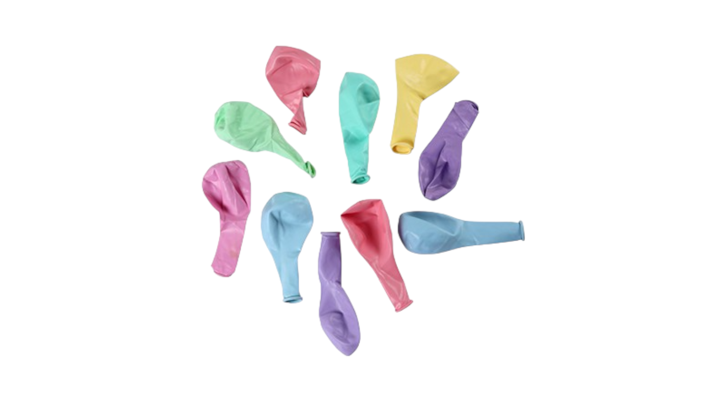 10 בלוני גומי צבעוניים בגווני פסטל לניפוח באוויר או בהליום.