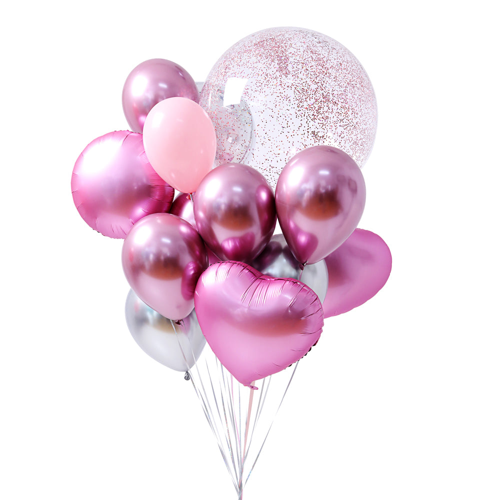 זר בלונים ורוד כסוף הכולל 13 בלונים