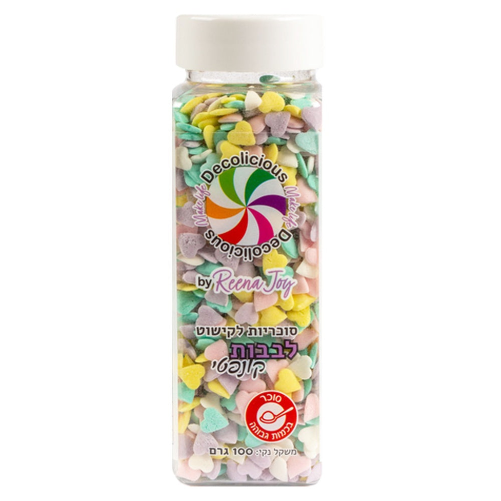 סוכריות לעוגה צבעוניות בצורת לבבות בגווני פסטל מהממים – קישוט עוגה איכותי, מקסים ופשוט לשימוש. מתאים לעוגות יום הולדת, עוגות חתונה, קאפקייקס וקינוחים חגיגיים. סוכריות בגודל  לקישוט עוגה בקלי־קלות, קישוט עוגה חגיגי לעוגת יום הולדת צבעונית, רעיון לקישוט עוגה מתוק.