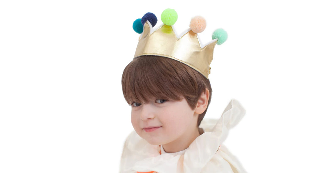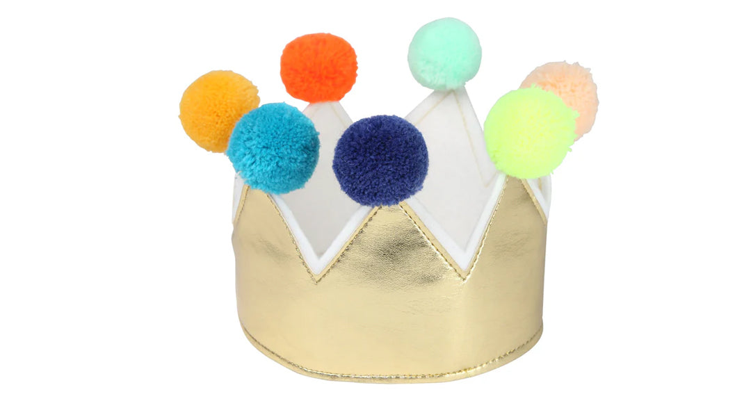 כתר מבריק זה עשוי מעור זהב ולבד, כולל שבעה פונפונים נועזים וזוהרים.