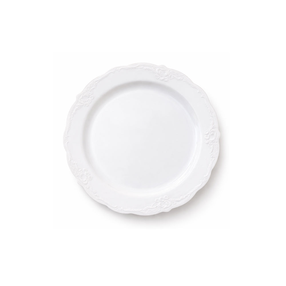 צרו שולחן אירוח מרשים עם סט צלחות בסגנון וינטאג׳ קלאסי בצבע לבן. הצלחות מעוצבות עם הבלטות עדינות ודוגמאות אלגנטיות, ומגיעות במגוון גדלים – למנה ראשונה, עיקרית וקינוח.