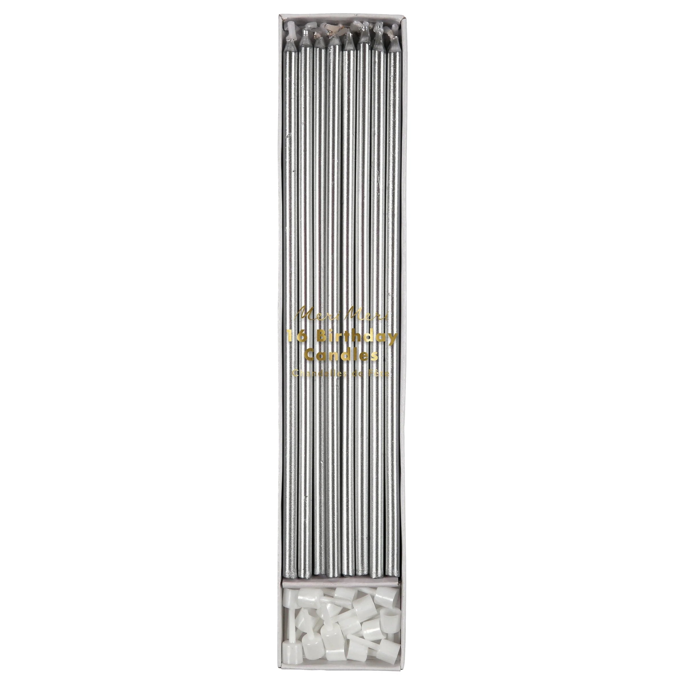 • נרות ארוכים מכסף - meri meri