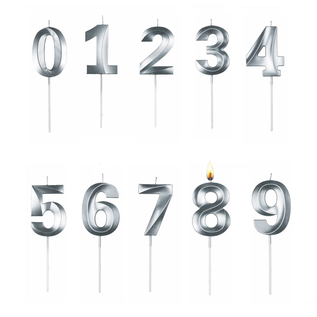 נר ספרה בצבע כסף מטאלי על מקל
