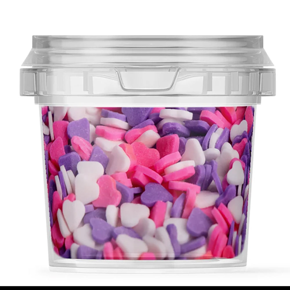 • סוכריות לעוגה לב בצבעים סגול ורוד לבן
