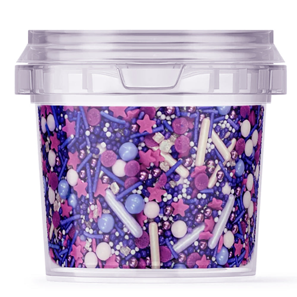 מיקס סוכריות צבעוניות בעיצוב פנטזיה בגוון סגול – תוספת מושלמת לעוגות, קאפקייקס או שולחן קינוחים!  קל לשימוש, מתאים לאפייה וקישוט.