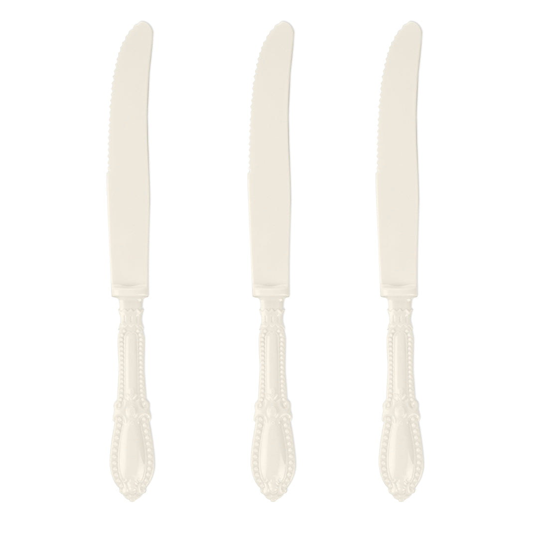 הוסיפו נגיעה אלגנטית לכל שולחן עם סכיני וינטג' קרם איכותיים. הסכינים עשויים מחומר חזק ועמיד, בעיצוב קלאסי ומרשים המתאים לכל סוג אירוע