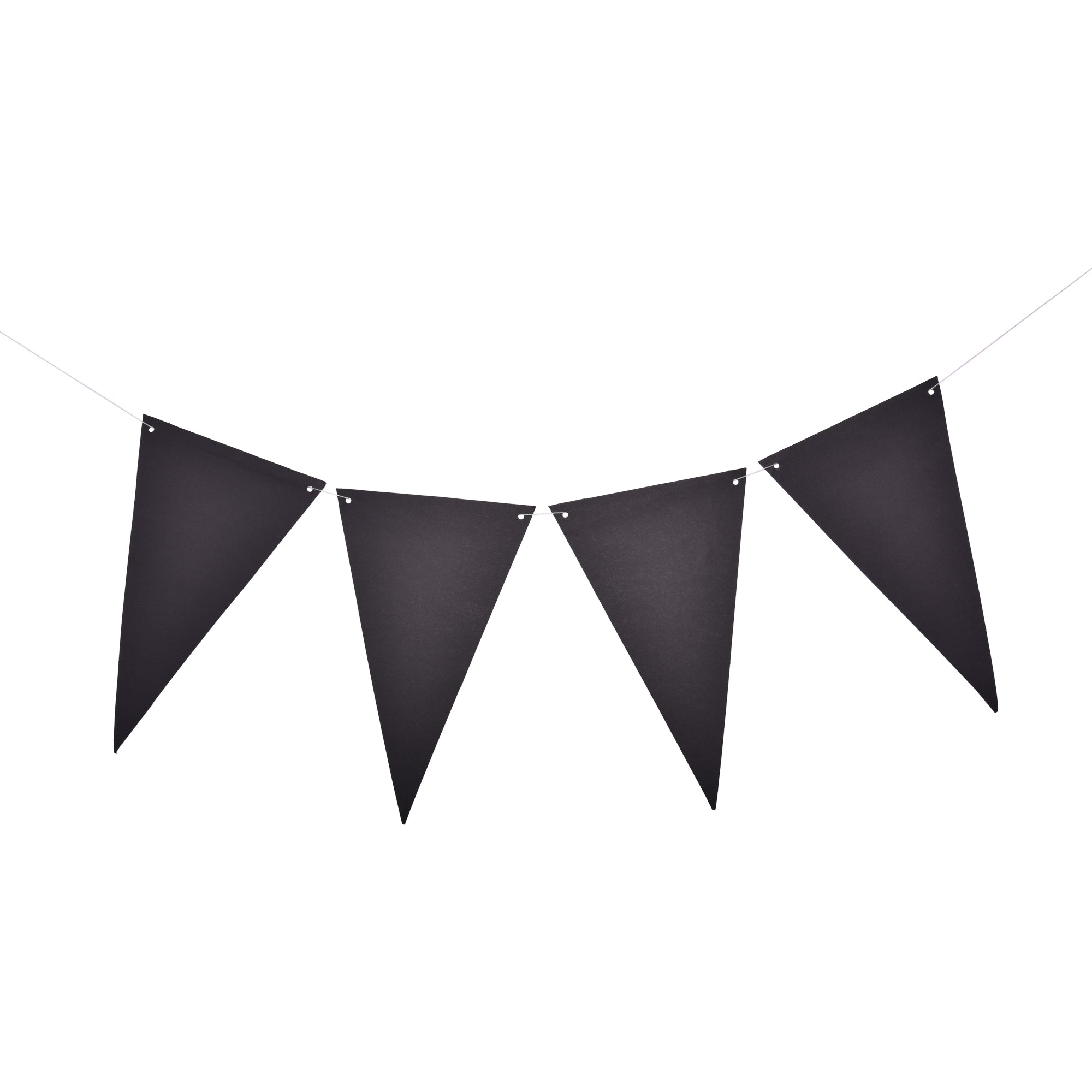 שרשרת דגלוני נייר שחורים עם גירים לכתיבת כל מה שבא לכם.