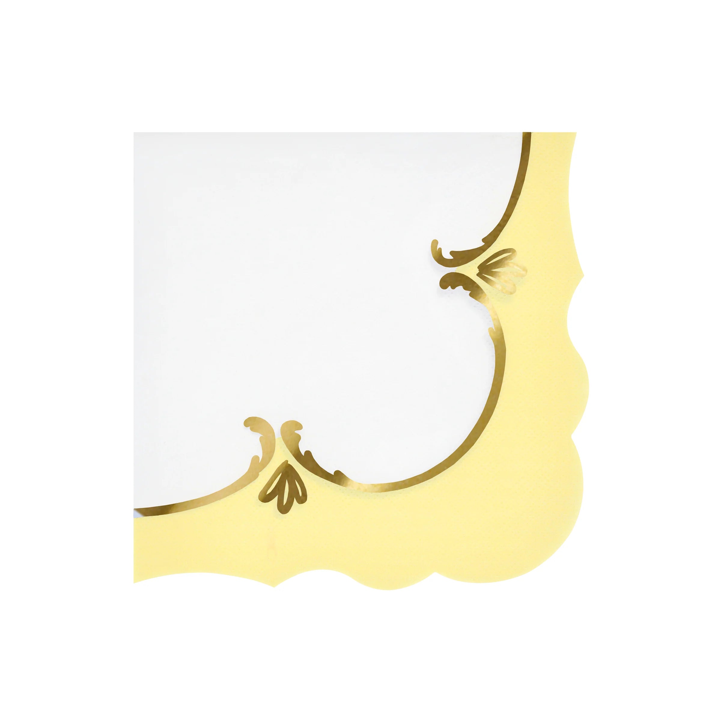 מפיות נייר גדולות בגווני פסטל עם איורים בזהב ושוליים גליים אלגנטיים – מושלמות למסיבת תה, מסיבת גינה, מסיבת כלה ואירוח חגיגי.