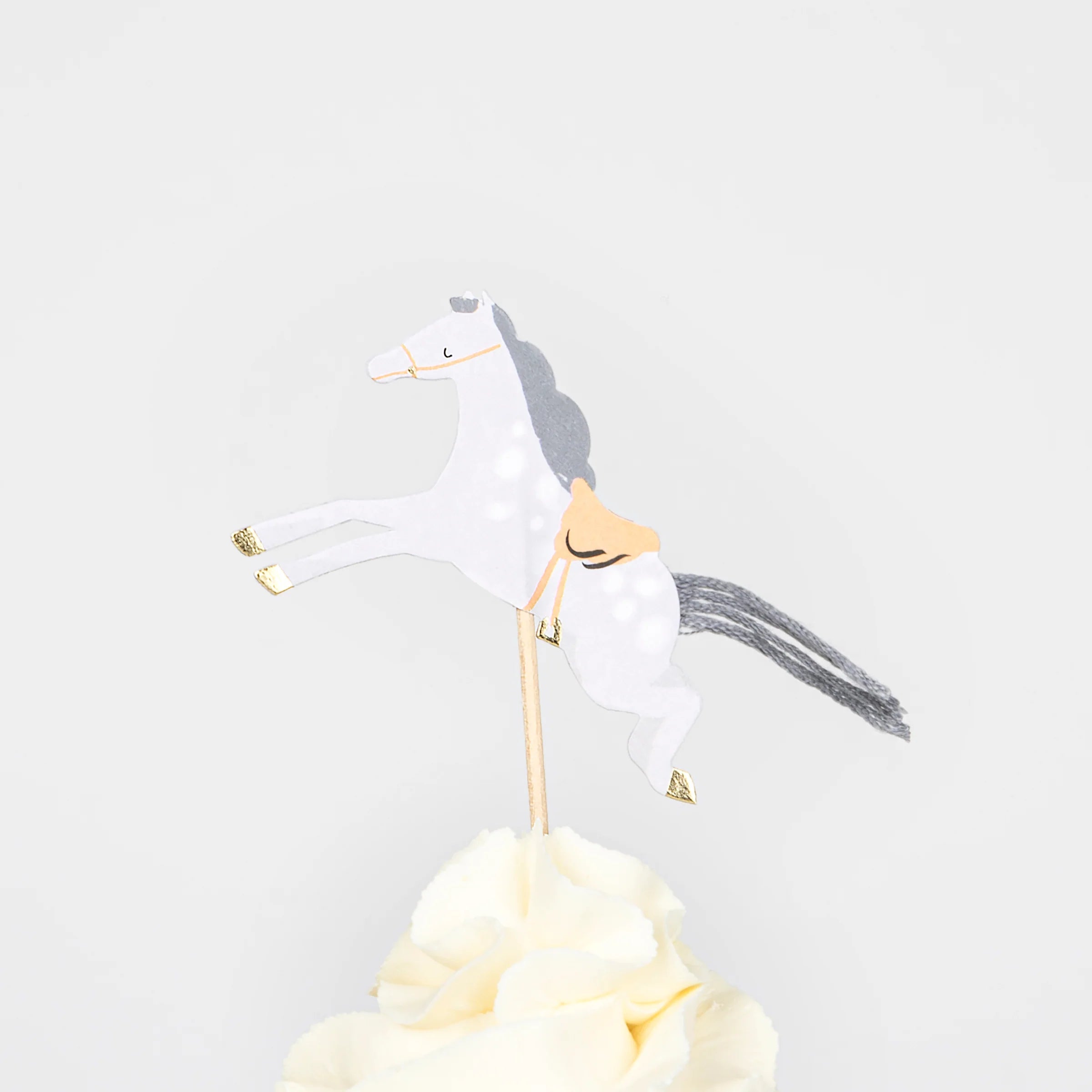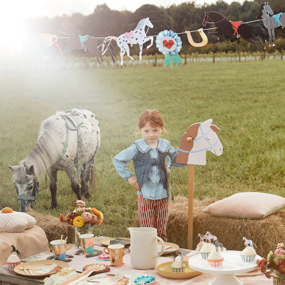 הפכו לאלופי האפייה עם ערכת הקאפקייקס המדהימה הזו! היא כוללת קישוטי סוסים בעיצוב חכם, עם זנבות עשויים גדילי חוטים מרשימים, ומנז'טים מעוטרים בפסים. זהו הפתרון המושלם ליצירת פינוקים טעימים למסיבת סוסים או רכיבה.
