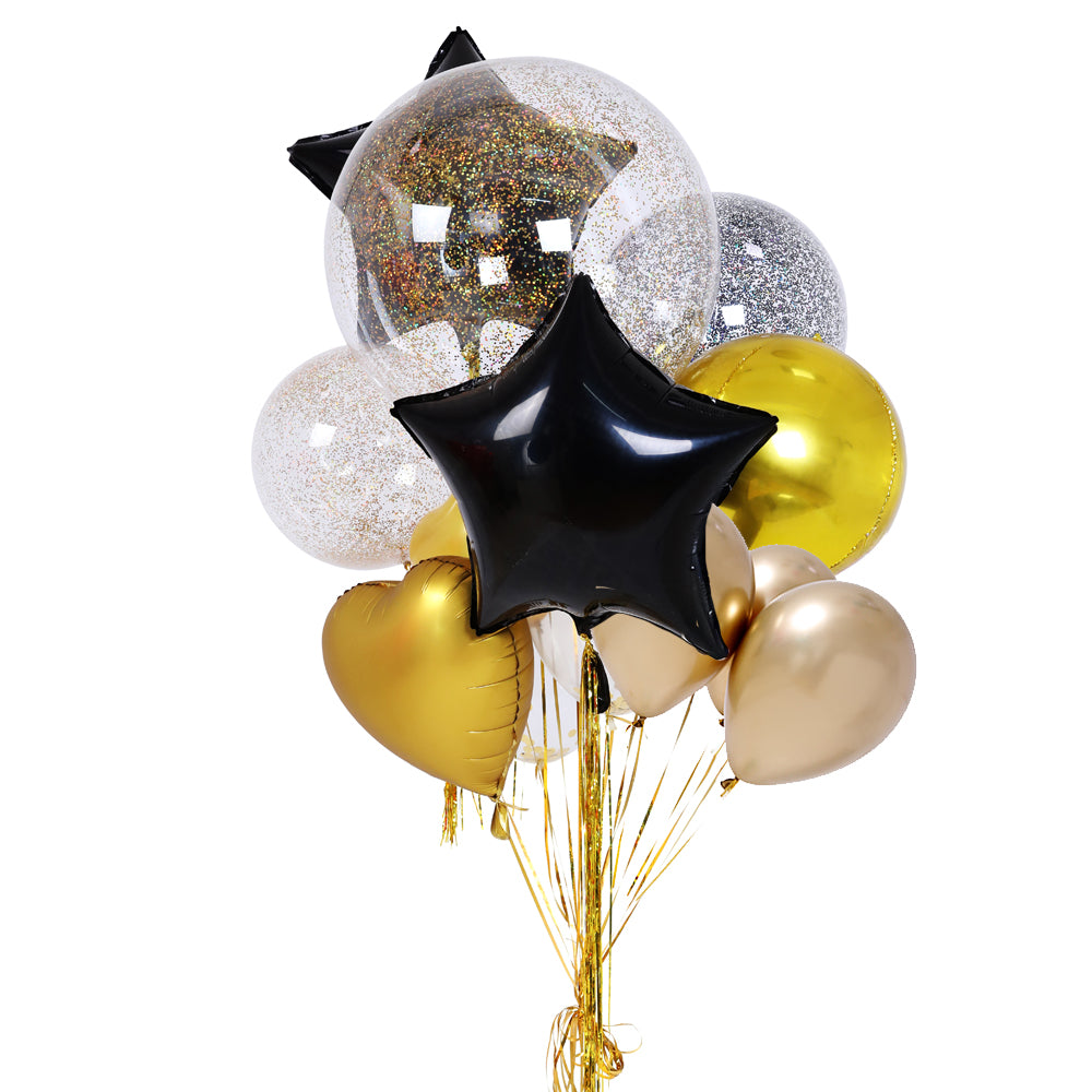 בועה 18" כוכבים זהב, בועה 24" קונפטי שחור נקודות