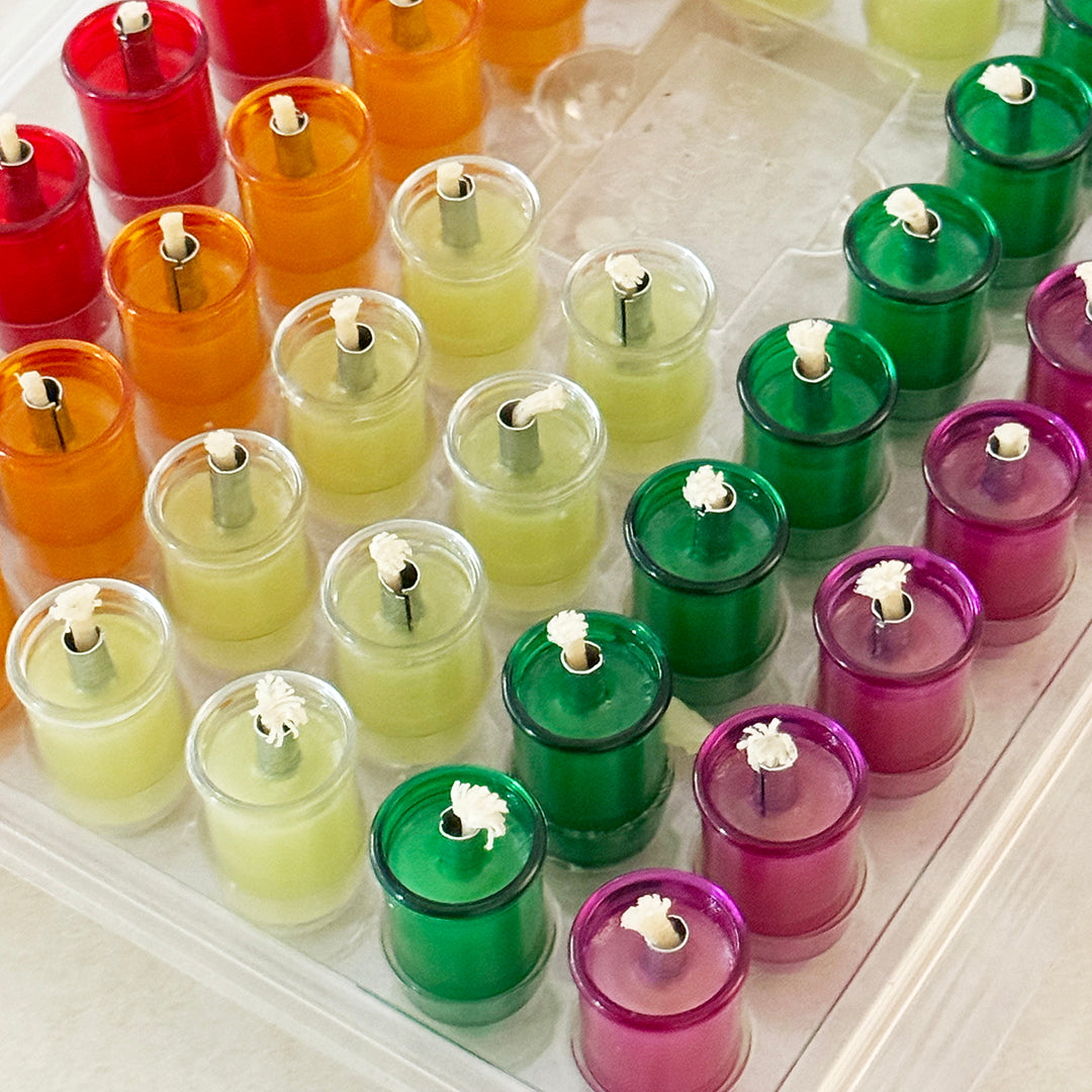 כוסיות שמן זית מוצק צבעוני מוכנות להדלקה לכל ימי חנוכה