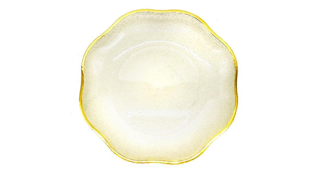 צלחת פטל חד פעמית קשיחה בצבע זהב שקוף עם שוליים בצבע זהב היא הבחירה המושלמת לכל אירוע חגיגי שילוב של עיצוב יוקרתי עם נוחות מקסימלית הופך אותה לאידאלית לאירועים גדולים וקטנים כאחד הצלחת משדרגת את שולחן האירוח ומוסיפה ברק ואלגנטיות לכל שולחן חג או מסיבה.