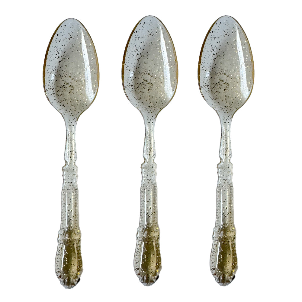 • 10 כפות וינטג׳ בצבע שקוף עם נצנצים בזהב